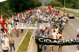 Bloqueio do trevo da BR 282 (Santa Catarina, [sem data]) [fotografia] / Fotógrafo(a) : Dirceu P. Vieira. -- Ref.: BR-SPMST_MST-SN-CIN_AMP_000488-002844-AMT.